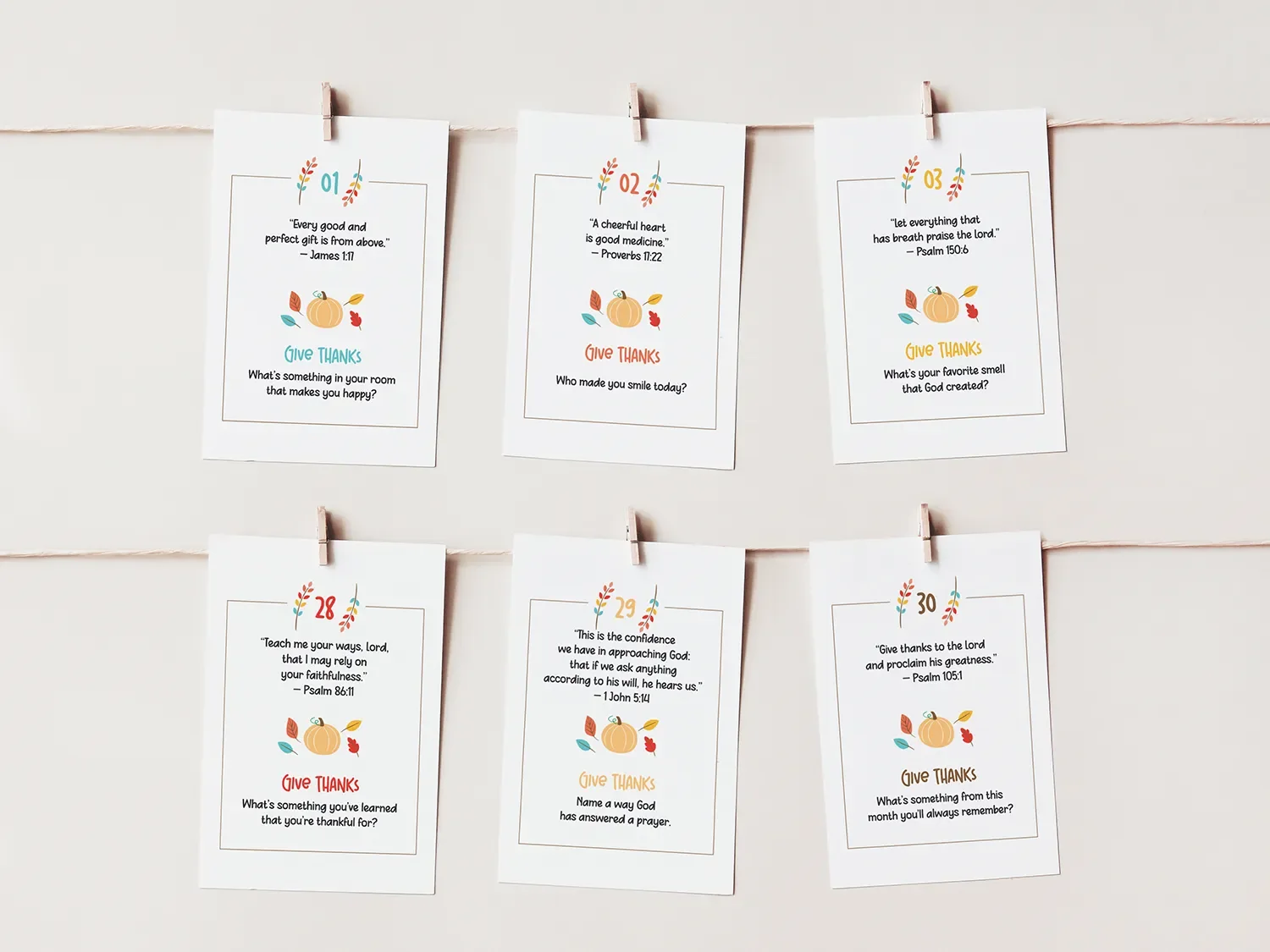 A short Bible verse paired with each prompt to help kids connect gratitude with God’s Word.
